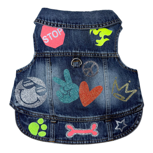Handmade Denim Jacket Dog Harness – Peace & Love Boy Edition sizes S to L